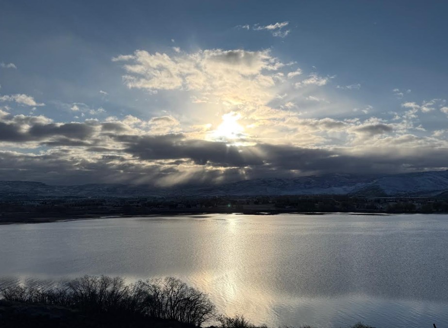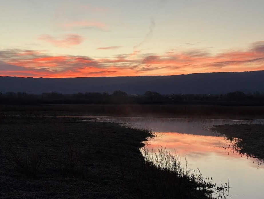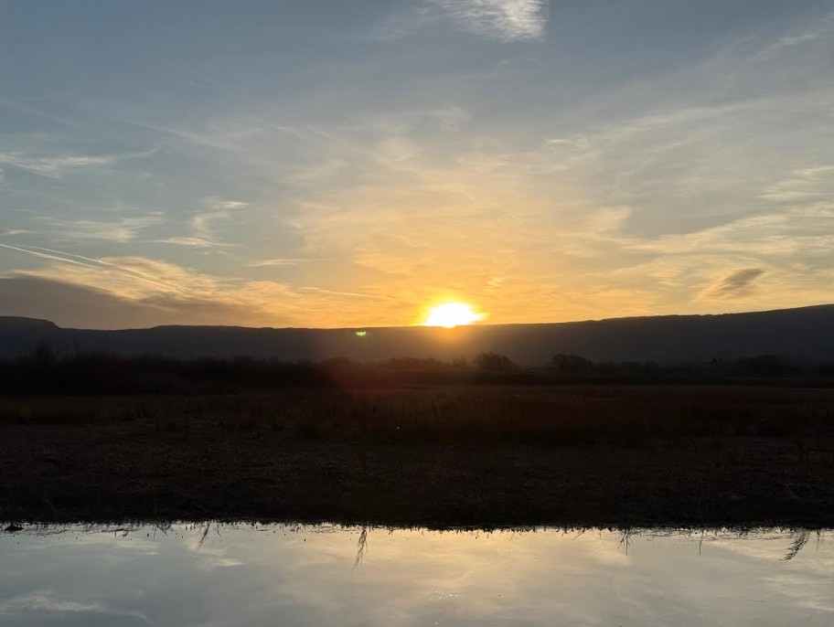 The sky had flipped again. Heavy clouds sat over the mountains to the east, but just above them, heavenly blue. I doubted I’d catch the exact moment of sunrise over the horizon, but if I waited longer, I’d see something.
