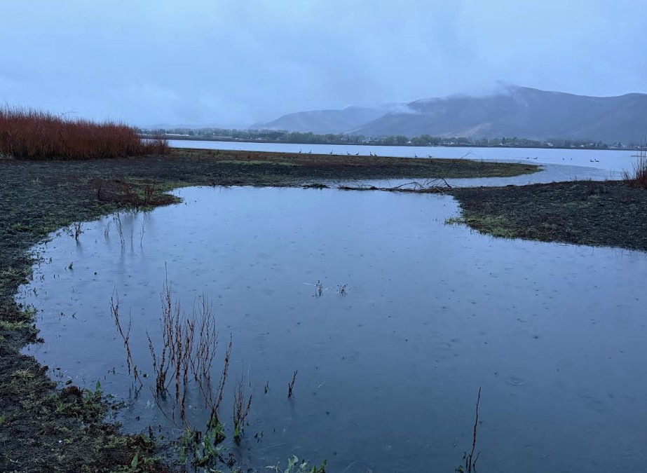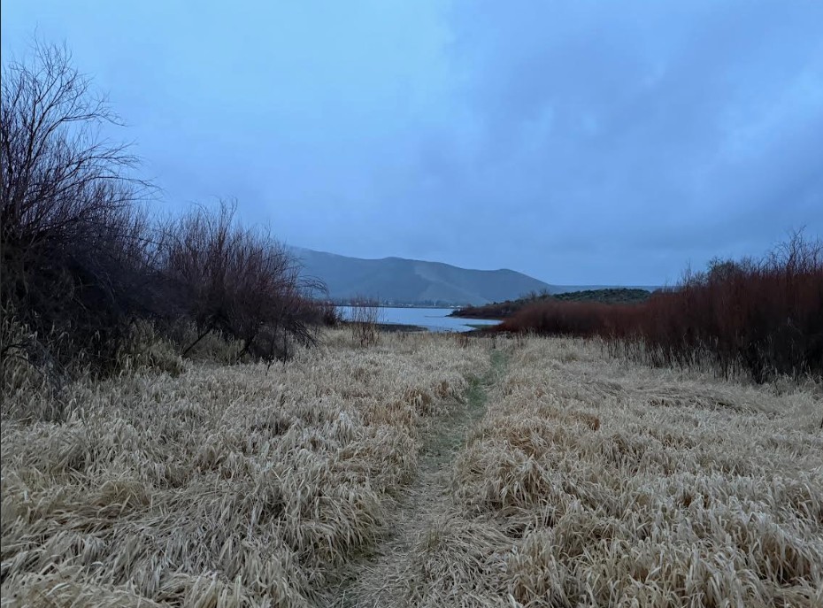 And for the first time this week, I knew I needed to keep waiting. So, I crossed back over the wetlands to the perimeter trail of the Rail Trail and started climbing to a vantage point above the reservoir. The rail trail felt familiar under my feet, but different this time. Not chasing a view. Not chasing a workout. Just… moving. Trusting the light would meet me somewhere.