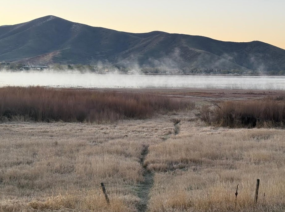 But what stopped me on the drive was the valley itself. It looked like it was on fire. Steam rose from the fields and off the Provo River, that quiet collision of warm water meeting cold air, creating something visible out of what normally goes unseen. Pockets of mist hovered everywhere, soft and surreal, like the earth was exhaling.